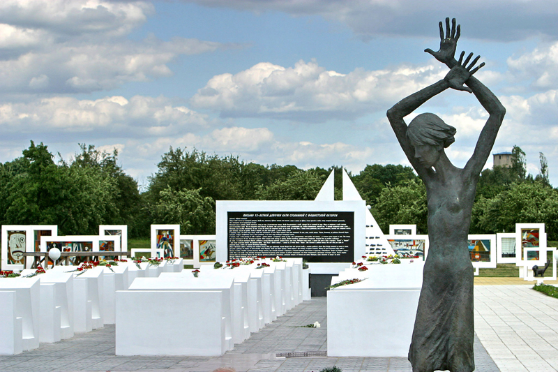 И еще одна тема прозвучит в этой экскурсии — тема войны — при посещении МЕМОРИАЛА "Красный Берег". Мемориальный комплекс был открыт в июне 2007 г. на месте детского концлагеря, в котором у детей брали кровь для раненых немецких солдат.